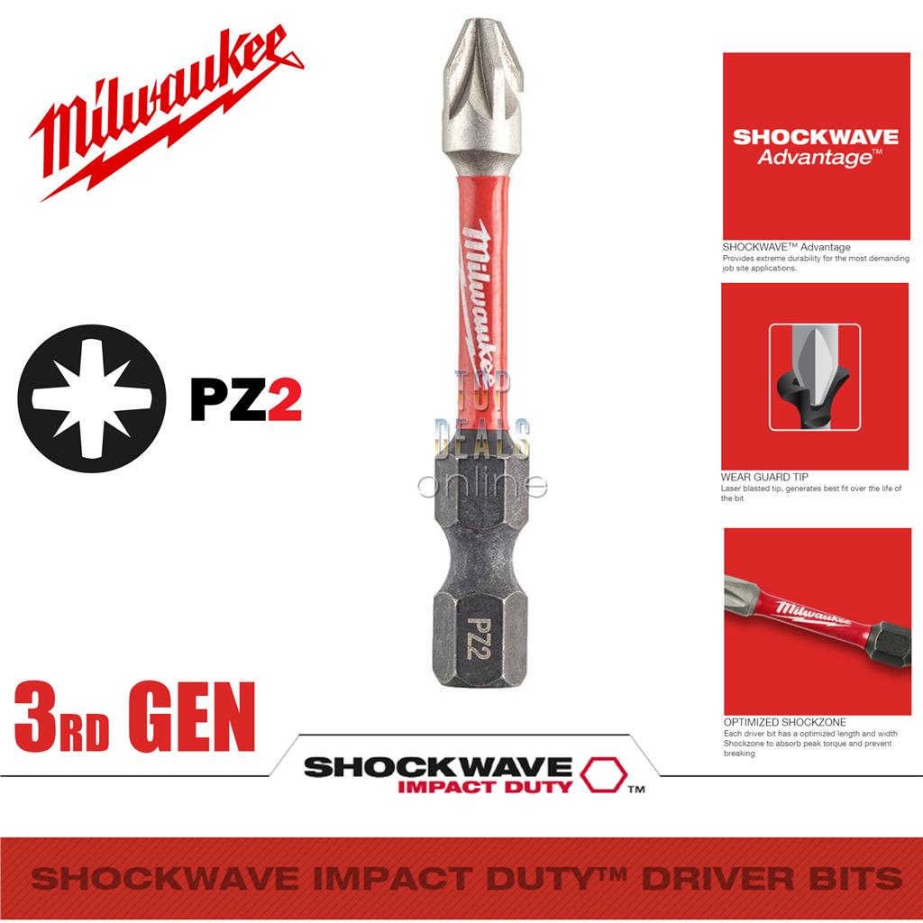 Milwaukee PZ2 PH2 50mm or 25mm option Shockwave Impact Screwdriver Bits 3rd GEN