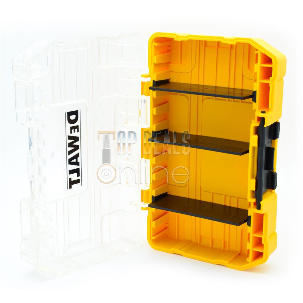 This Small Mini & Medium Dewalt ToughCase+ accessory holder is highly robust, this accessory cases fits the new Dewalt TSTAK system it features a clear front window so you can see your accessories easily and a slide lock to keep your bits in side, ideal for all screwdriver bits upto 57mm.